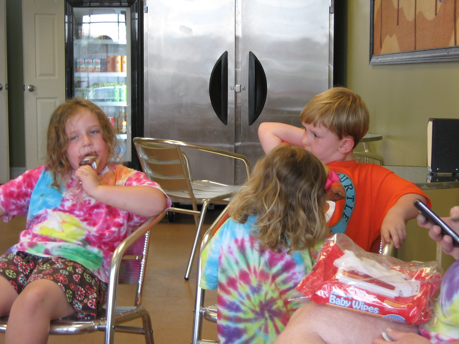 On Thursday the dads had their morning out and went fishing on the pier. In the morning we opened up the tue dye shirts and all oohed and ahhhed. They turned out awesome! We spent the morning on the beach. In the afternoon, we went for a walk on the pier to check the fishing progress, but the dads had already left for lunch. They didn't have much luck. The pier was a little ramshackle which made me a little nervous. Later that afternoon, while the dads had nap time, we all went to a sea turtle hospital. Seth loved it and it was definitely a highlight of the trip. After the hospital, we went to Luna Pops for all natural, organic popsicles. I got Mango Chili and Seth had Cookies and Cream. We had a quite evening in. Seth and I went to bed early, but Mark and some of the others went back to the pier for a little night fishing/observing.